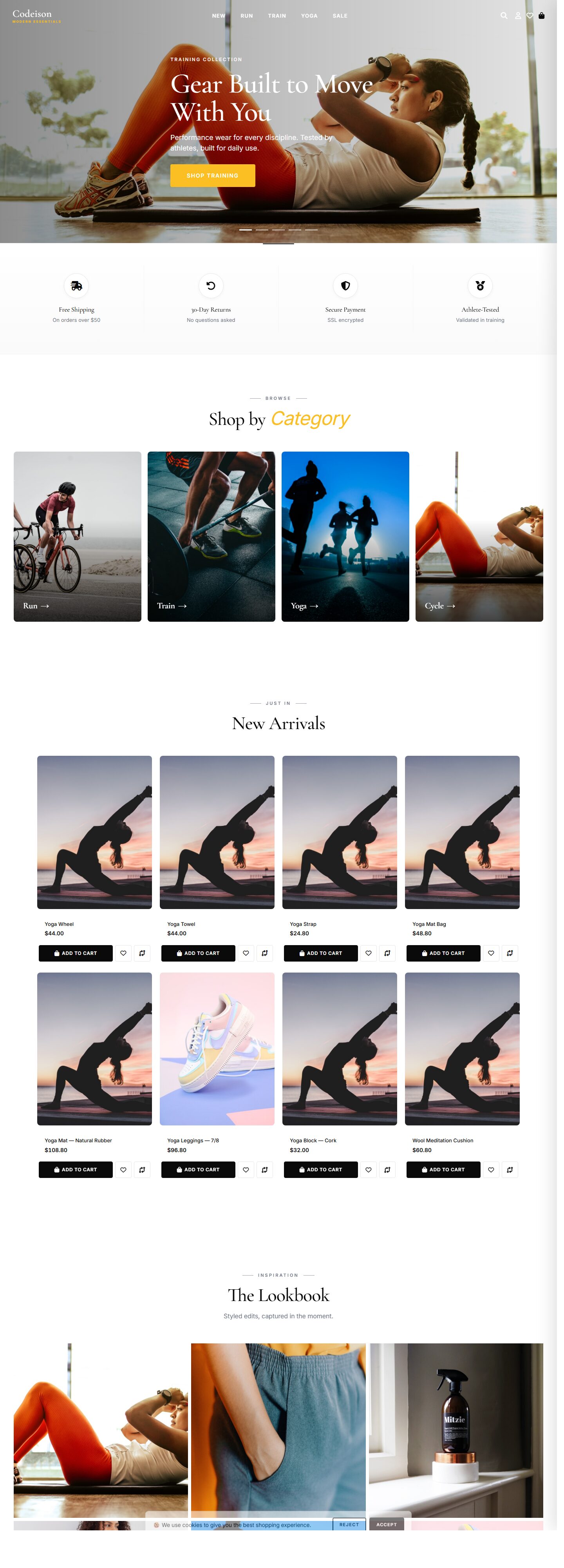 Live demo: See the Athleisure Bold x Modern combination live. You can switch between all 10 layouts from the demo header to compare before you commit.