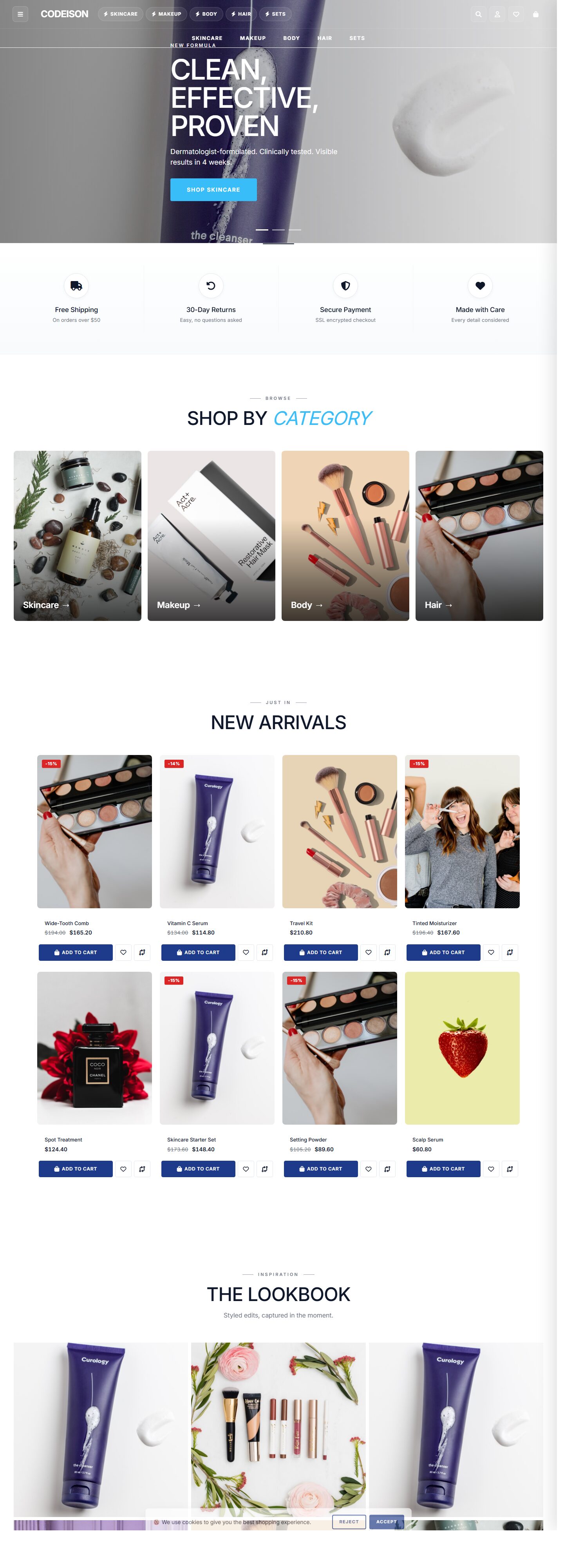 Live demo: See the Beauty Clean x Bold combination live. You can switch between all 10 layouts from the demo header to compare before you commit.